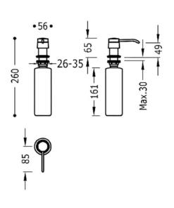TRES 13474110AC COCINA Dispensador de Jabón Empotrado a Encimera Color Acero