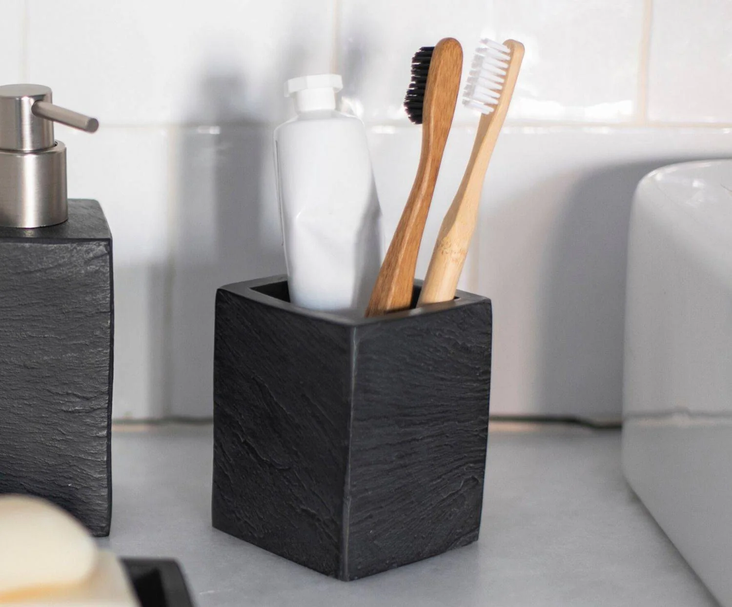 Portacepillos de baño de pizarra moderno negro fabricado por Andrea House.