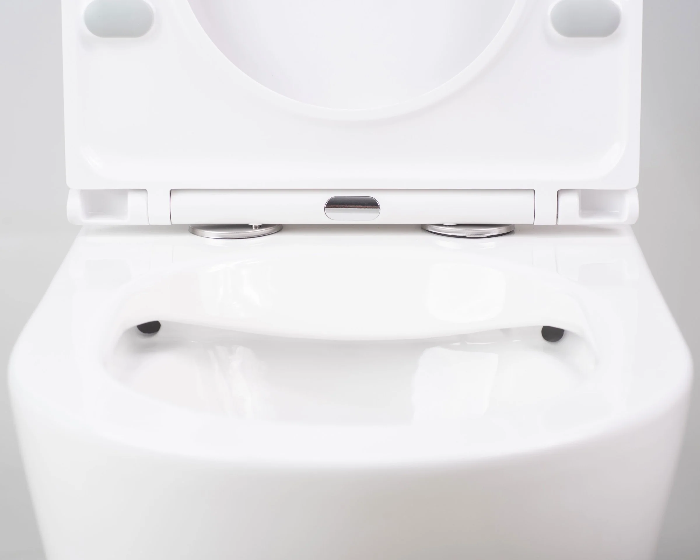 - Tapa y asiento extraplano gabricado en termodur con caída Soft-Close amortiguada y extraíble, para una cómoda limpieza (incluye kit de bisagras).