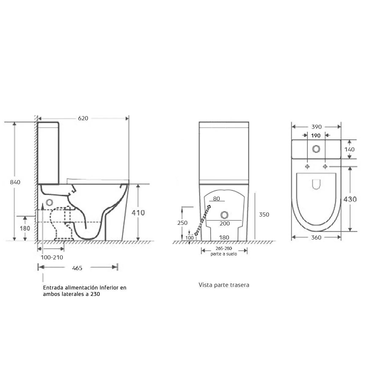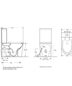 - Tanque con alimentación inferior, mecanismo de doble descarga con dos pulsadores de 4.5L/3L.