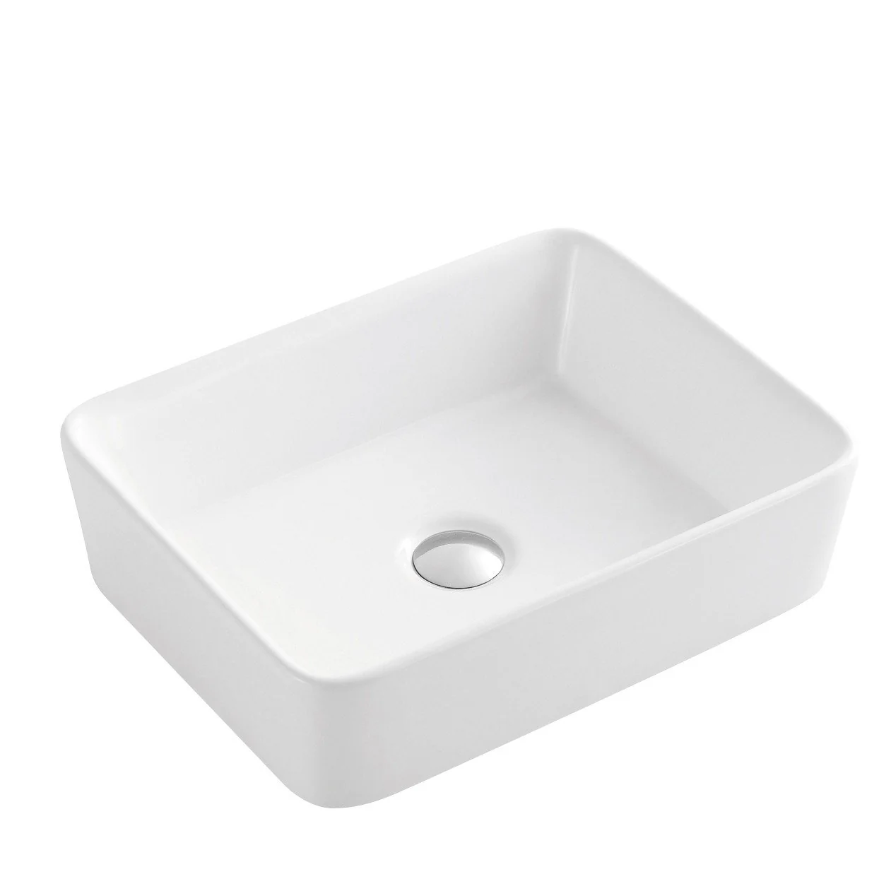 Lavabo De Sobre Encimera de la serie QTRO de Aquore. Fabricado en porcelana blanca brillo de alta calidad. Sin rebosadero. De forma rectangular con cantos finos y esquinas redondeadas.