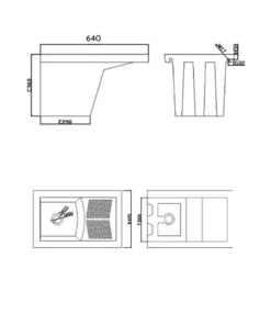 Medidas: 475x370x140. No incluye grifería ni válvula de desagüe.