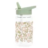 Botella de plástico transparente con detalle de cierre en color rosa y estampado de flores en color rosa. Fácil de usar ya que contiene una pajita y es antifugas lo que la hace perfecta para llevar a la escuela, deportes o excursiones. Solo es apta para bebidas frías.