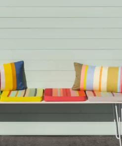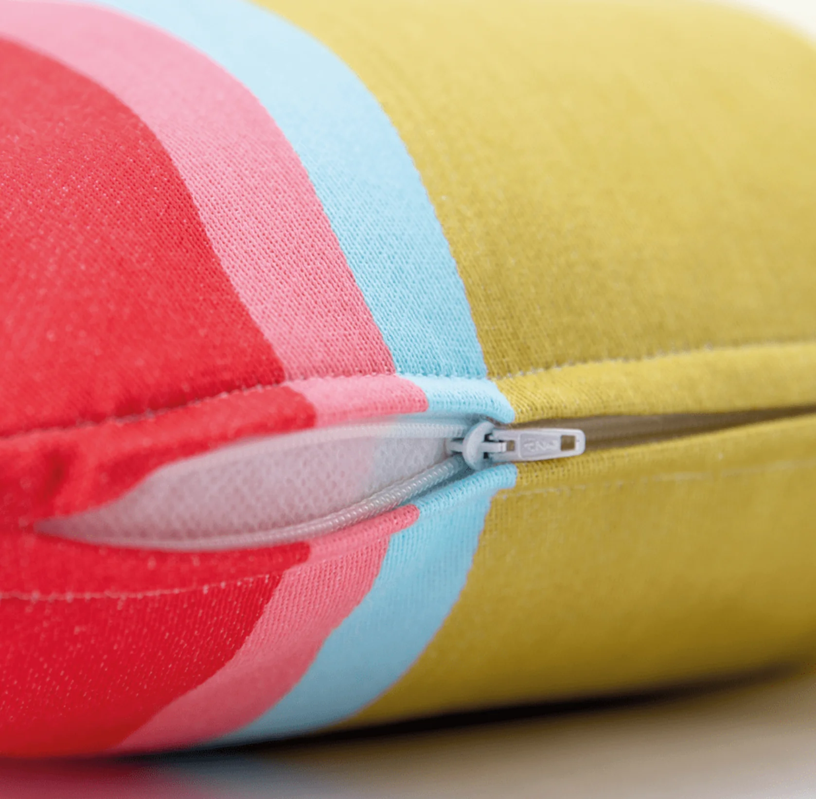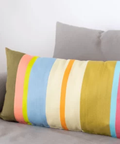 DESCRIPCION: cojin de rayas en vivos colores. Desenfundable y con el relleno incluido