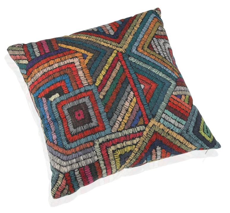 DESCRIPCION: Cojín de 45×45 cm con rayas multicolores estampadas por las dos caras y relleno incluido