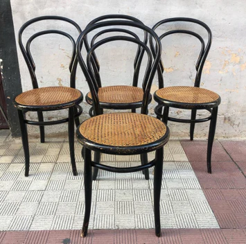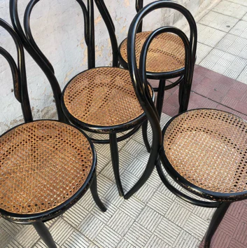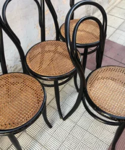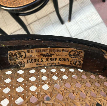 DESCRIPCION: conjunto de 4 sillas de mimbre y madera de finales del SXIX de la casa vienesa Jacob & Josef Kohn, competencia directa de Thonet