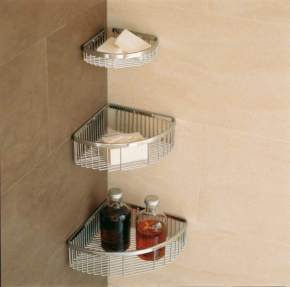 Lira Jabonera Rincon Rejilla N.1 de la serie LIRA fabricado por Cosmic. Jabonera de ducha de rincón. Ideal para aprovechar una esquina del espacio de la ducha. En rejilla y acabado en cromo. Accesorio de baño que se suministra con tacos universales de alta calidad no específicos para anclaje en paredes de yeso laminado (sin alicatar). Jabonera fabricada en latón o aleaciones análogas en acabado cromo. Lira es una colección de jaboneras de ducha y cestos de Cosmic que favorecen la comodidad y el estilo urbano. sin dejar de ofrecer diseño. Accesorio de baño con 10 años de garantía. Limpiar con un paño suave humedecido en agua y secar con una gamuza. No usar trapos ni estropajos abrasivos, detergentes, ácidos o productos de limpieza de los que desconozca su composición.