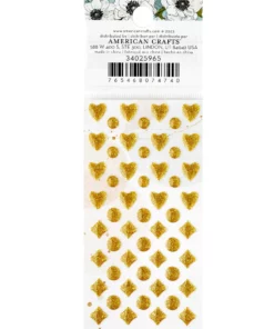 106 puntos y corazones esmaltados en glitter dorado y tamaños que combinan con la colección.Perfectos para tus trabajos de scrapbooking y manualidades.