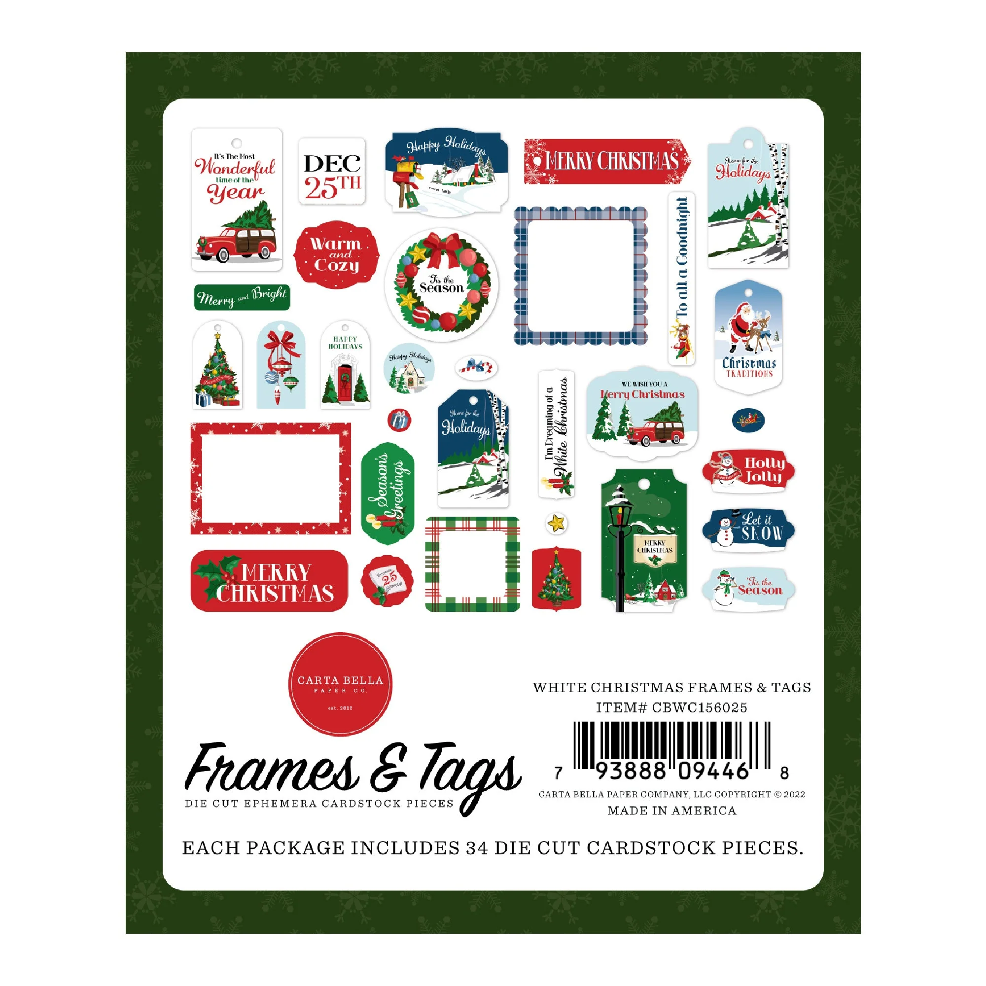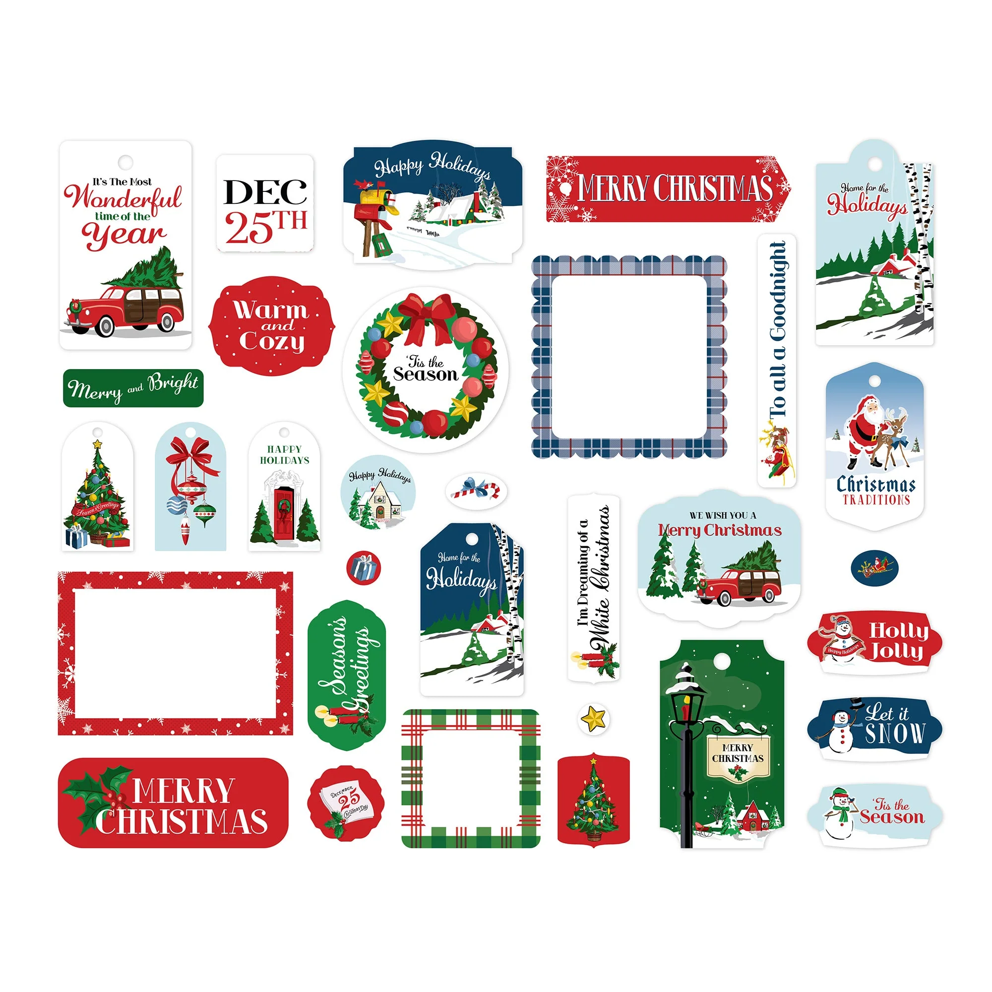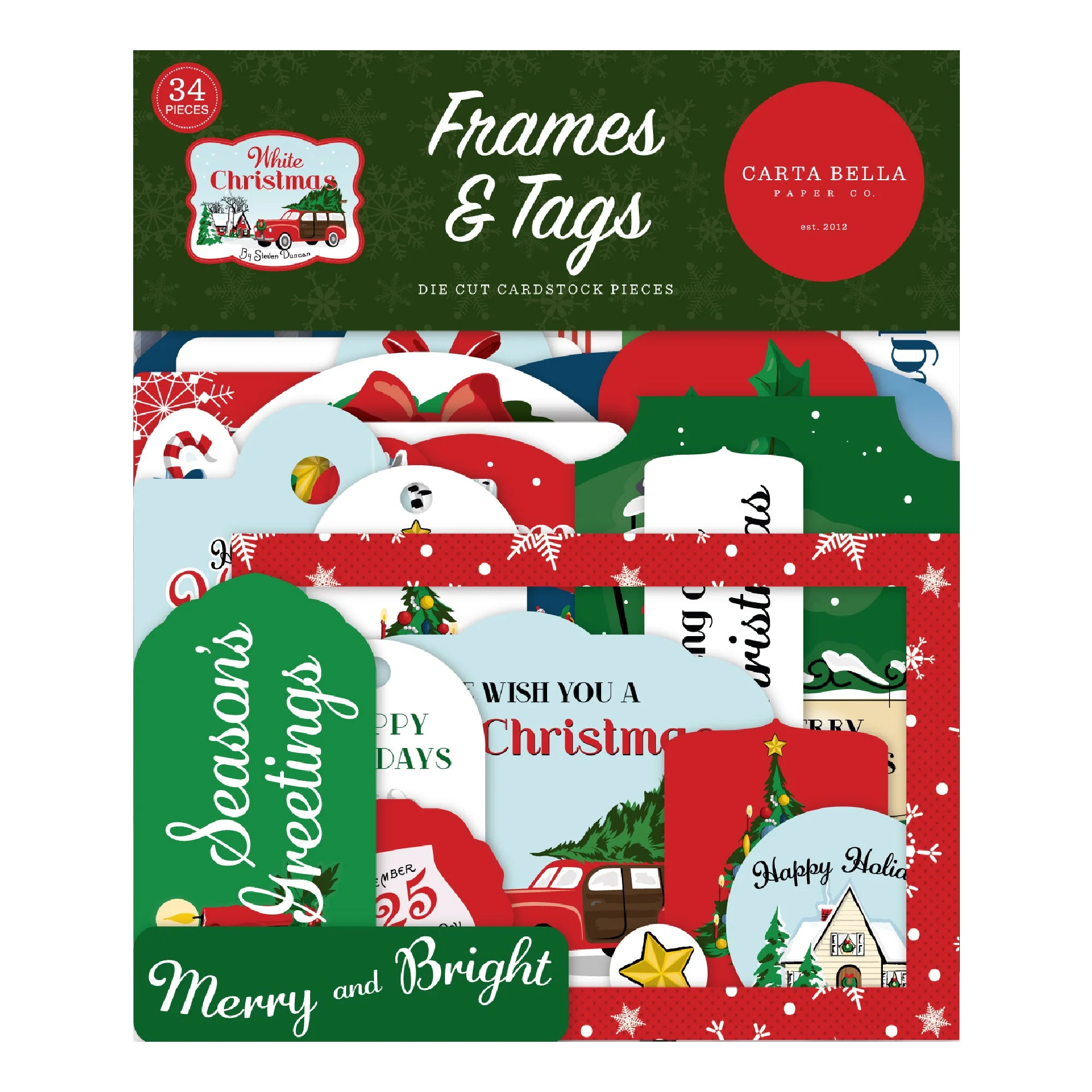33 troquelados de marcos y etiquetas que combinan con la colección para decorar tus trabajos y proyectos de Scrapbooking.