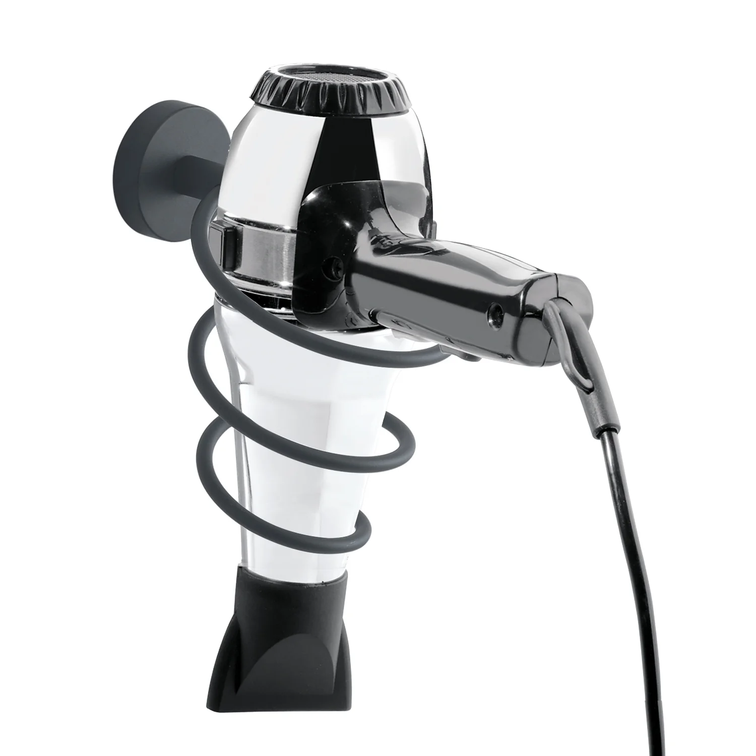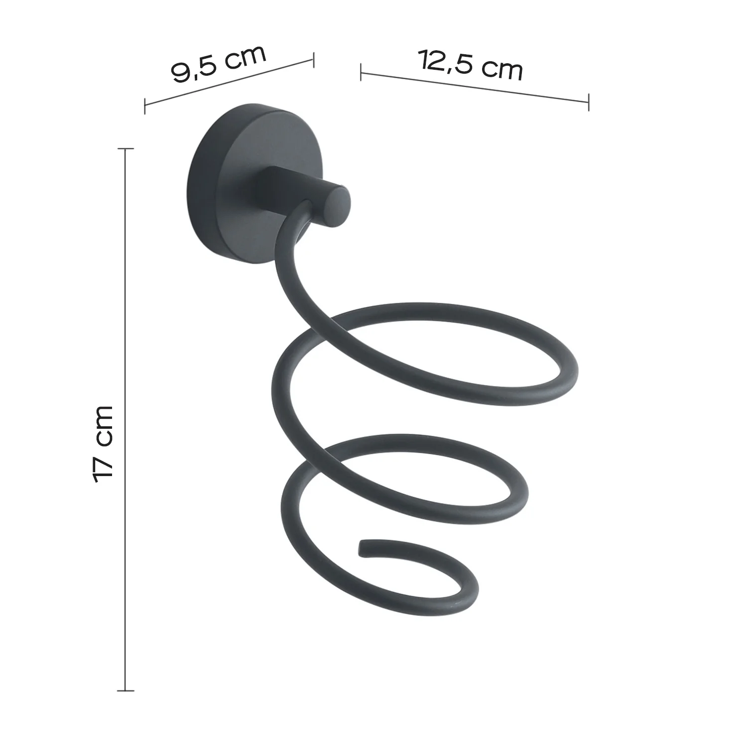 Soporte Para Secador Negro Mate de la serie EROS fabricado por Gedy en Italia. Acabado color negro mate. Fabricado en acero inox y cromall. Posibilidad de fijación con cola no incluida