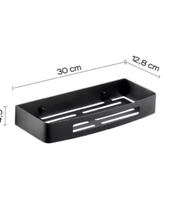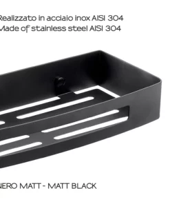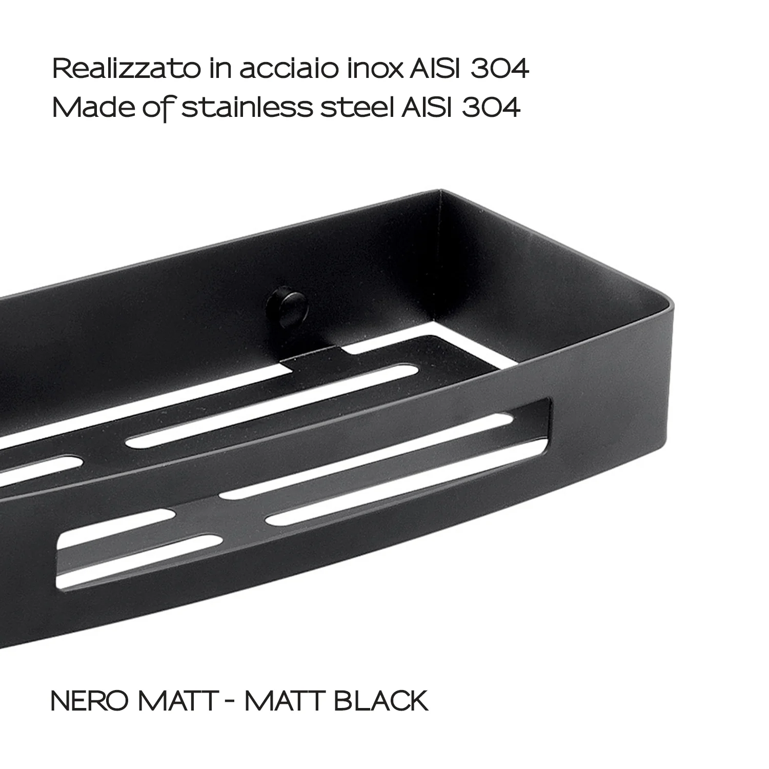 Portaobjetos Rectangular Negro Mate de la serie NERVA fabricado por Gedy en Italia. Acabado color negro mate. Fabricado en acero inox aisi 304.