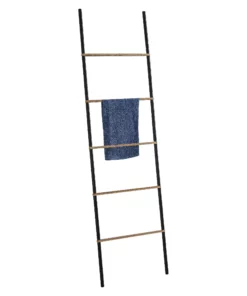 Toallero y Columna de Pie Negro mate-Natural de la colección KENTA de Gedy.