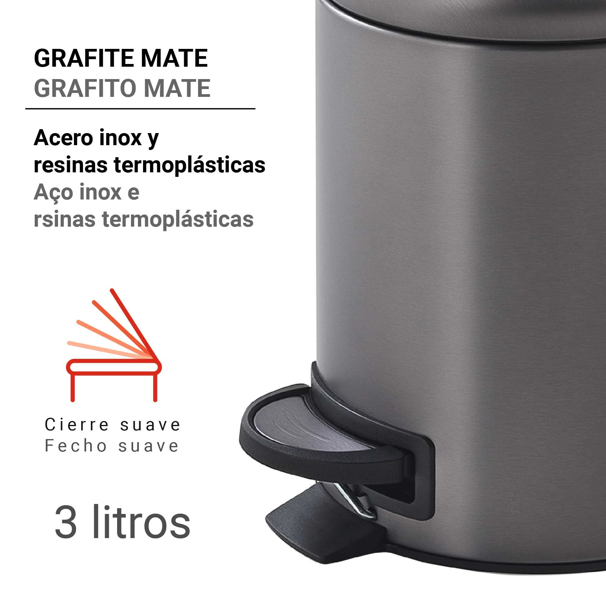 GEDY 32098100000 POTTY Papelera Gun Metal