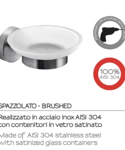 Jabonera Cepillado de la serie PROJECT fabricado por Gedy en Italia. Acabado color cepillado. Fabricado en acero inox aisi 304 y cristal.