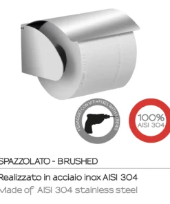 Portarrollo Con Tapa Cepillado de la serie PROJECT fabricado por Gedy en Italia. Acabado color cepillado. Fabricado en acero inox aisi 304.