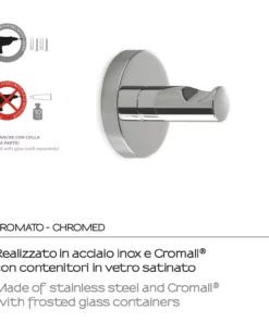 Percha Simple Cromo de la serie FELCE fabricado por Gedy en Italia. Acabado color cromo. Fabricado en acero inox y cromall. Posibilidad de fijación con cola no incluida