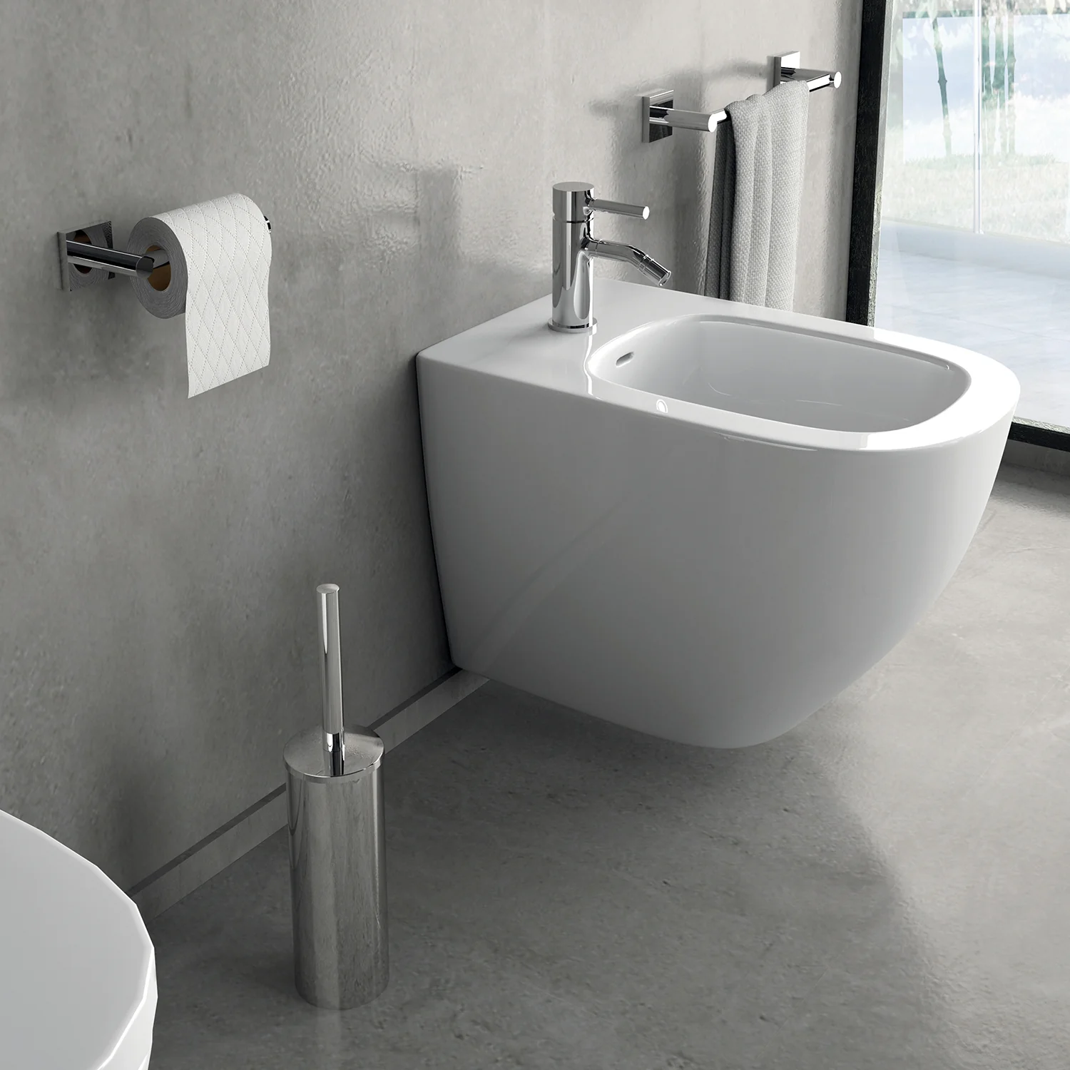 Portarrollos Cromo de la serie FUJI fabricado por Gedy en Italia. Acabado color cromo. Fabricado en acero inox aisi 304 y cromall. Posibilidad de fijación con cola no incluida