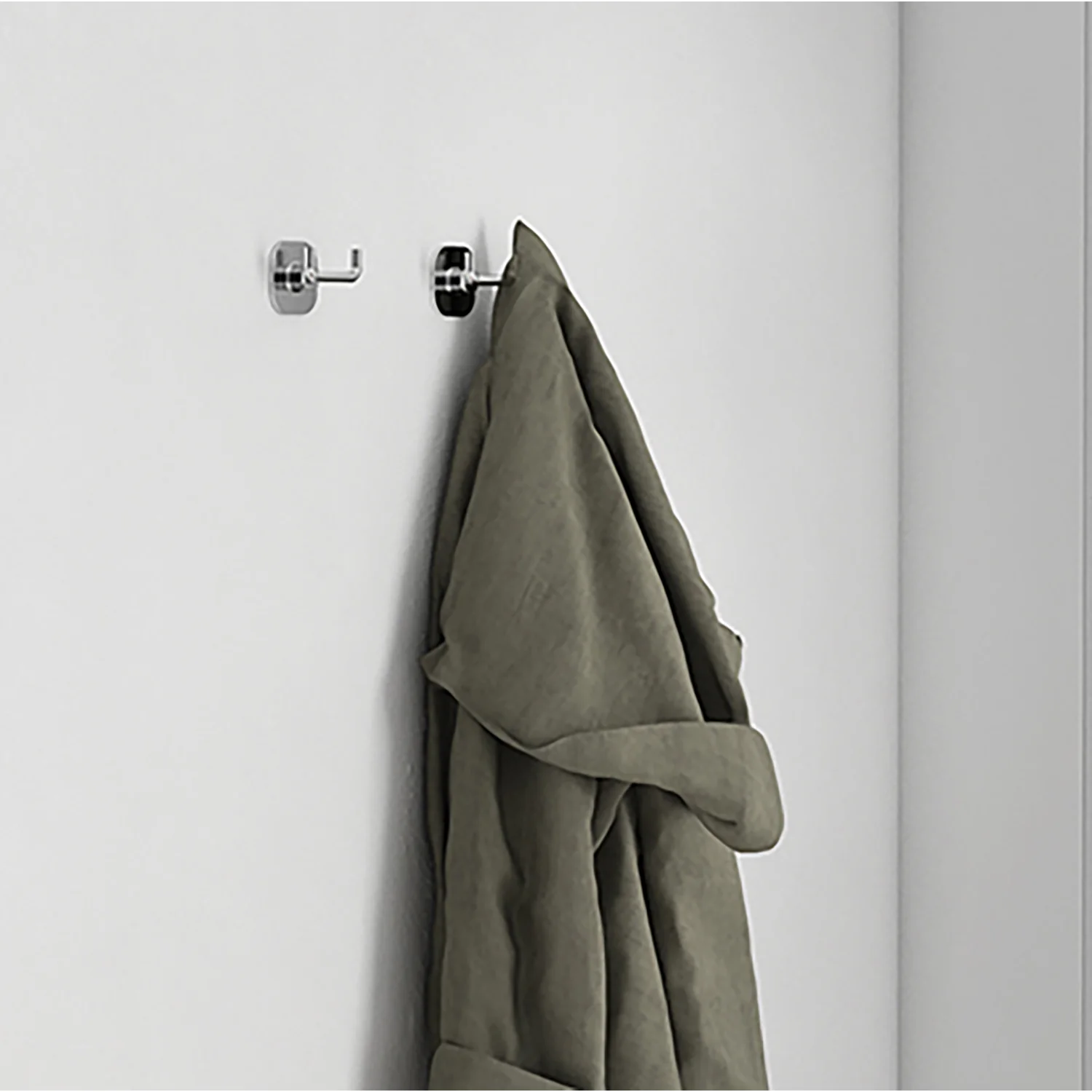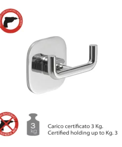 Percha Doble Cromo de la serie TEIDE fabricado por Gedy en Italia. Acabado color cromo. Fabricado en acero inox y cromall. Fijación a la pared también con bioadhesivo.