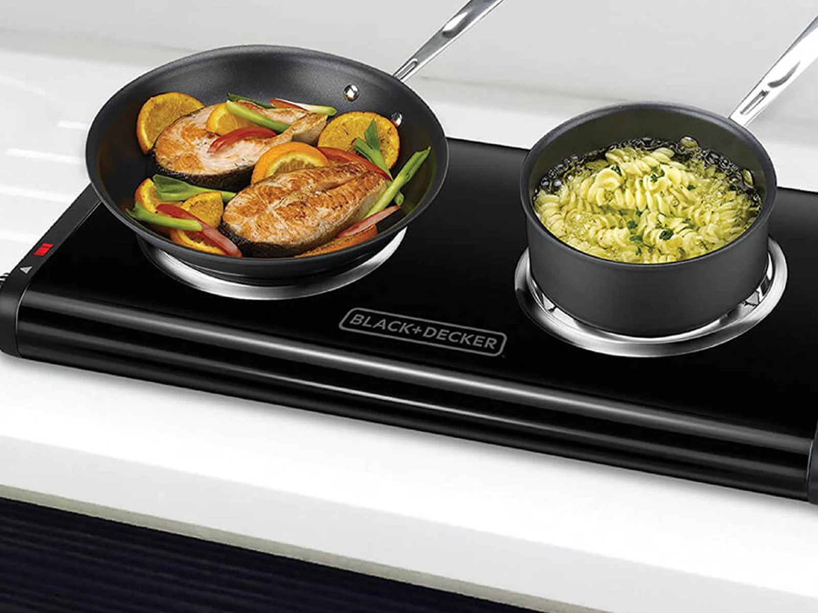Haga más fácil servir para cenas grandes de familia y fiestas con una hornilla doble estilo bufé. El diseño simple es compacto y liviano para mover con facilidad y dobles perilla de control de temperatura variable permiten cocinar y mantener los alimentos calientes a la temperatura adecuada. Las bobinas de la doble hornilla lado a lado distribuyen el calor de forma uniforme, mientras las prácticas luces indicadoras de funcionamiento para cada lado proporcionan más tranquilidad y facilidad durante el uso.