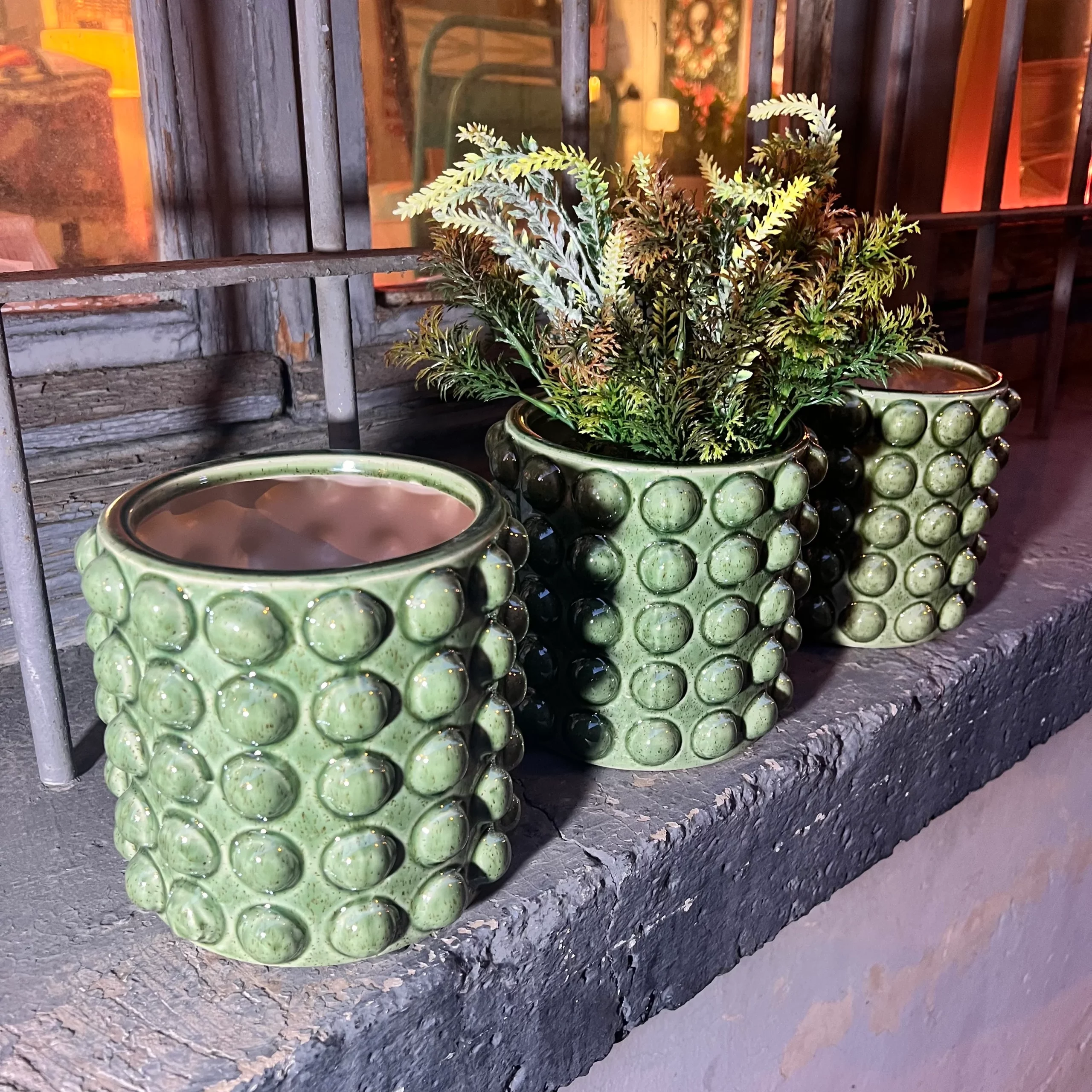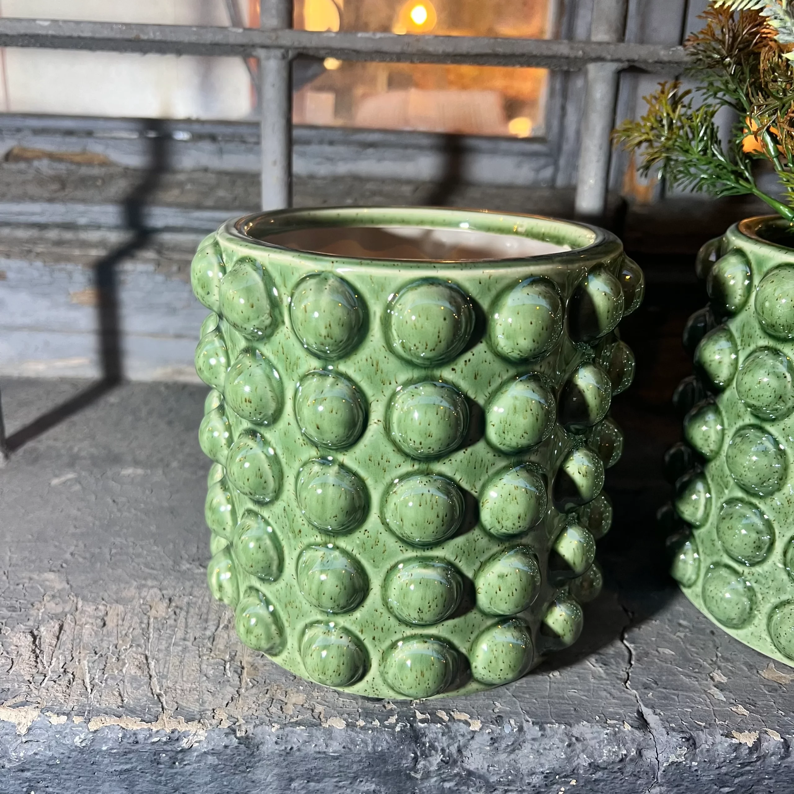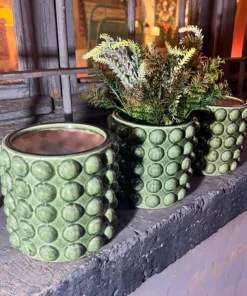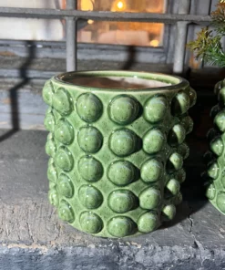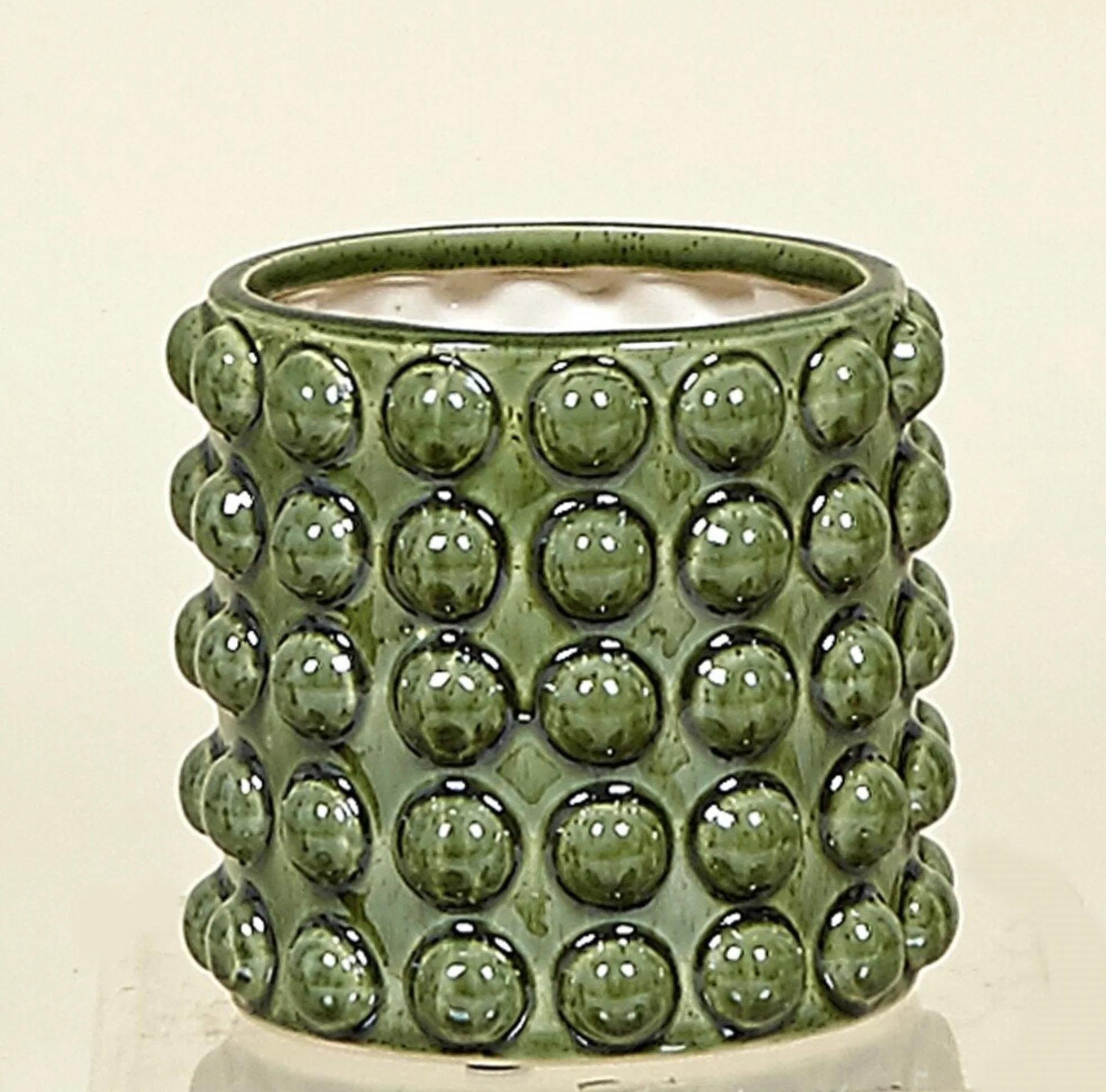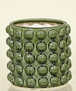 DESCRIPCION: Jarrón de cerámica con formas de bolas o pelotas en tonos verdes