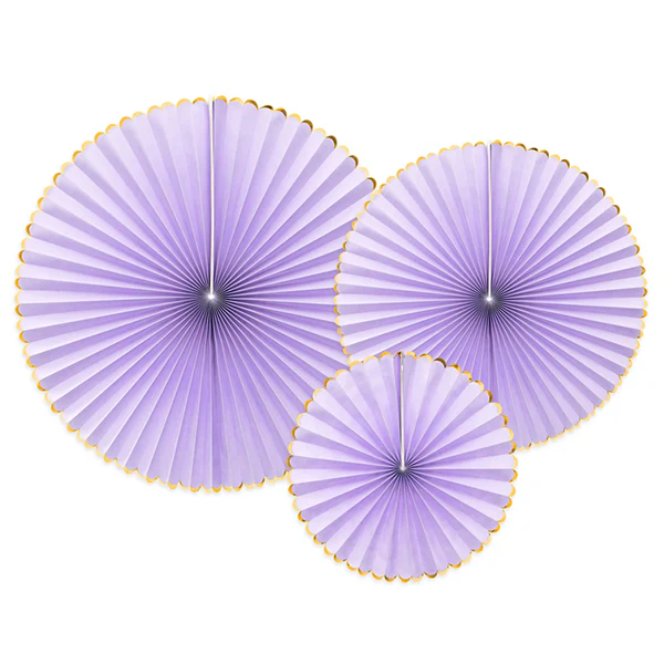 Este kit contiene 3 abanicos de diferentes tamaños en color malva.