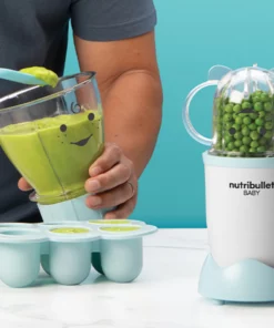 La licuadora Nutribullet Baby de 200W es ideal para preparar alimentos saludables para bebés. Con su diseño en color celeste y 20 piezas incluidas, te permite mezclar y almacenar purés frescos de forma rápida y conveniente. Además, su tamaño compacto y materiales seguros la hacen perfecta para las comidas diarias de tu pequeño.