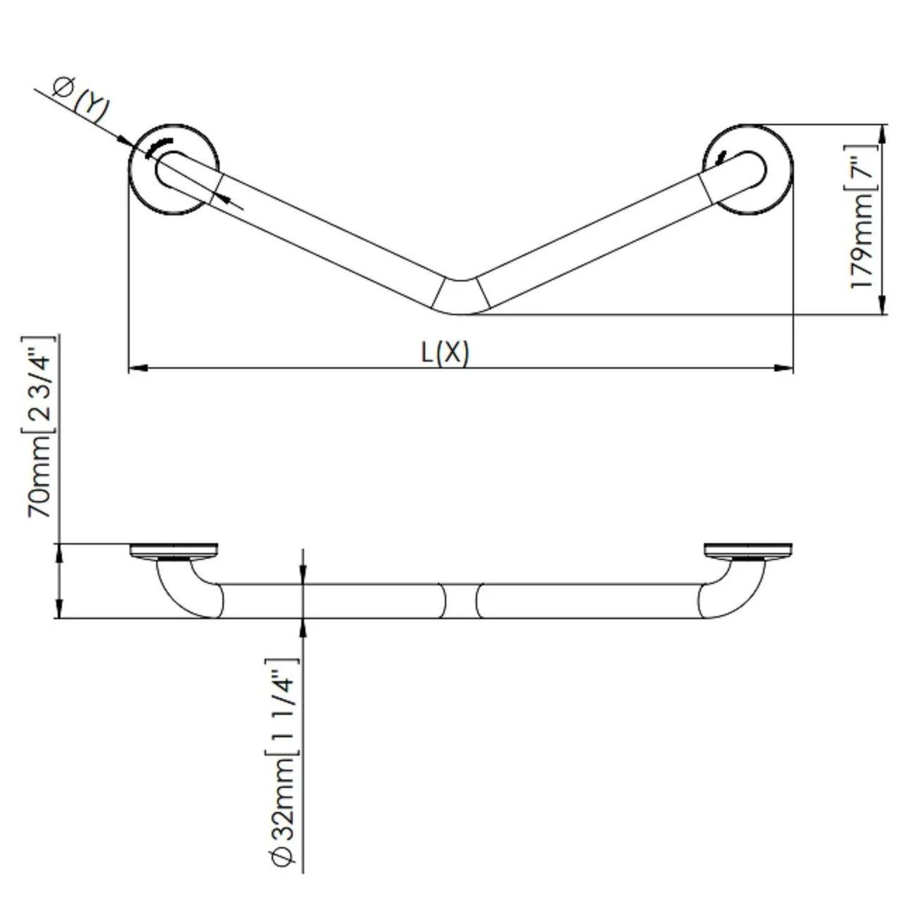 Barra de apoyo en ángulo de 130º, fabricada en acero o acero inoxidable AISI 304, para aseos adaptados. Adecuada para lavabos específicos para personas de edad avanzada o con movilidad reducida. Indicada para conseguir baños y recintos públicos sin barreras arquitectónicas de accesibilidad. Modelo apto para colectividades. Máxima durabilidad y resistencia a la oxidación.