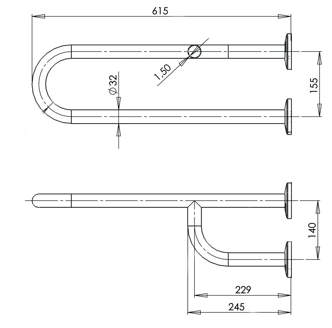 MEDICLINICS BFD600C Barra Fija 3P Derecha Inox Brillo