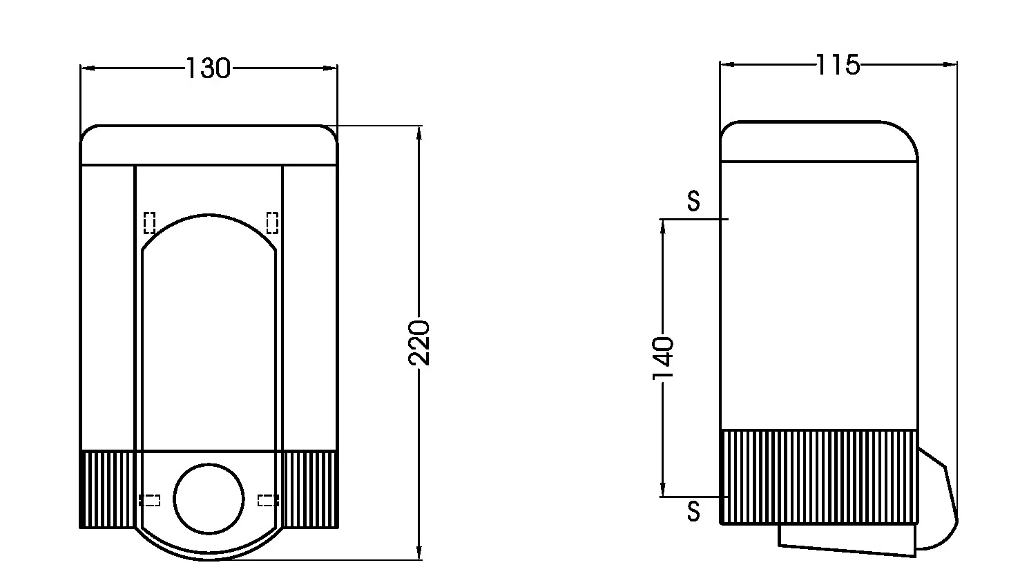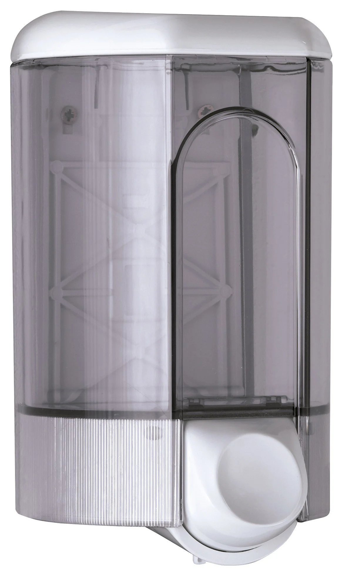 Dosificador de jabón fabricado en termo-plástico ABS, cierre con llave y válvula anti-goteo resistente a la corrosión.