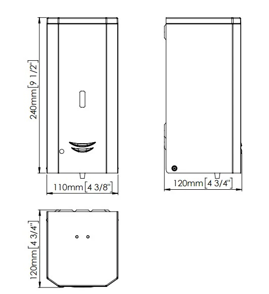 Dosificador de jabón spray de accionamiento automático de 1 L de capacidad máxima, fabricado en acero inoxidable AISI 304, de 0,8 mm de espesor, para instalar directamente a la pared.