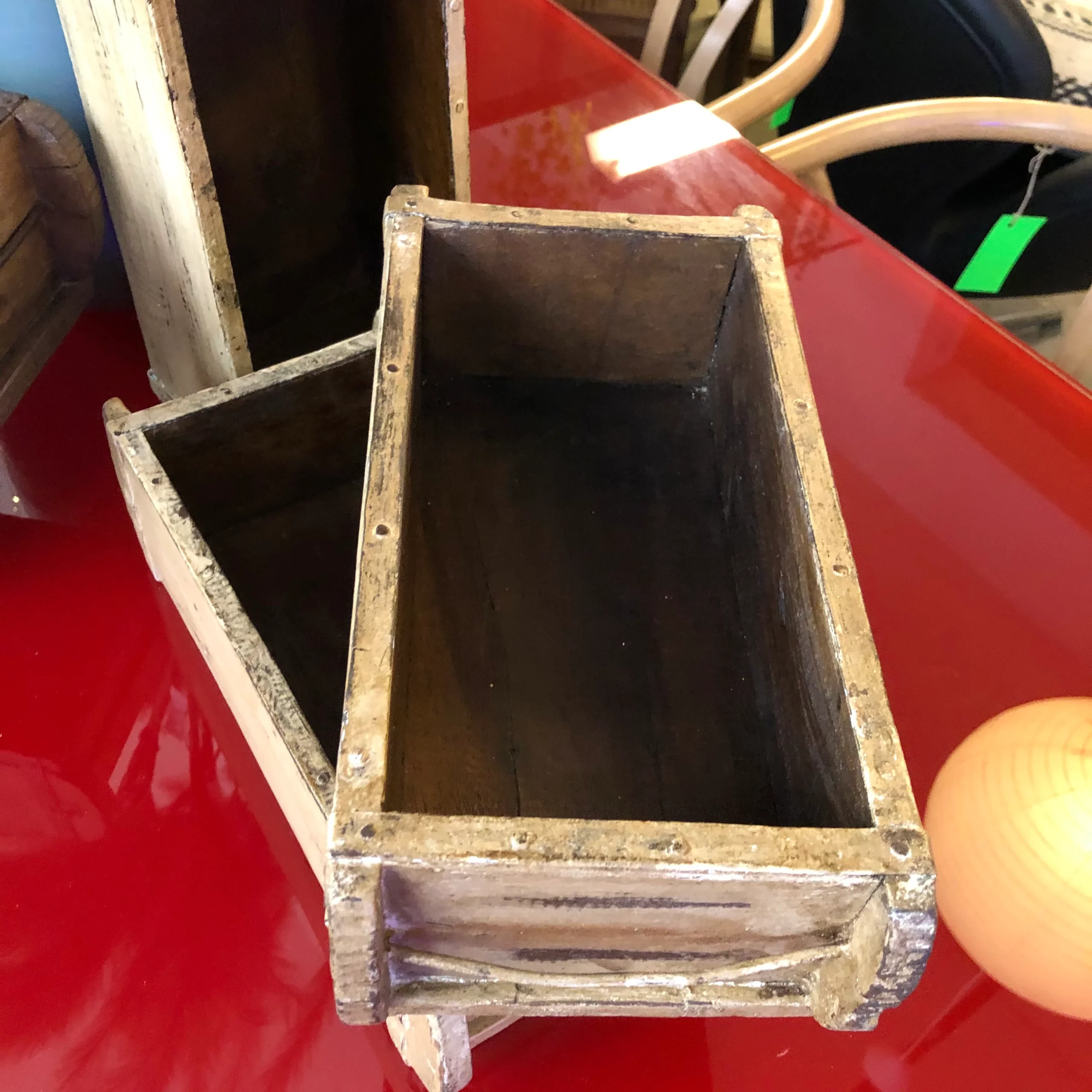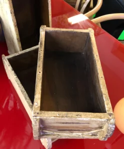 DESCRIPCION: Caja de madera usada como molde para fabricar los ladrillos de adobe y dejarlos secándolos al sol. Usos posibles, como macetero, como vacciabolsillos en un hall o en una habitación, etc