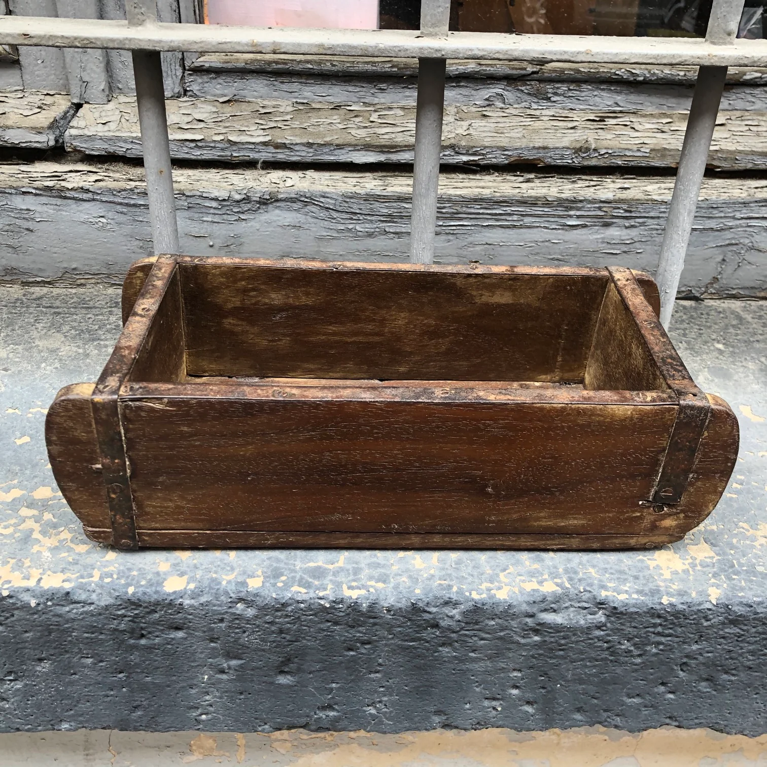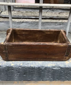 DESCRIPCION: Caja de madera usada como molde para fabricar los ladrillos de adobe y dejarlos secándolos al sol. Usos posibles, como macetero, como vacciabolsillos en un hall o en una habitación, etc