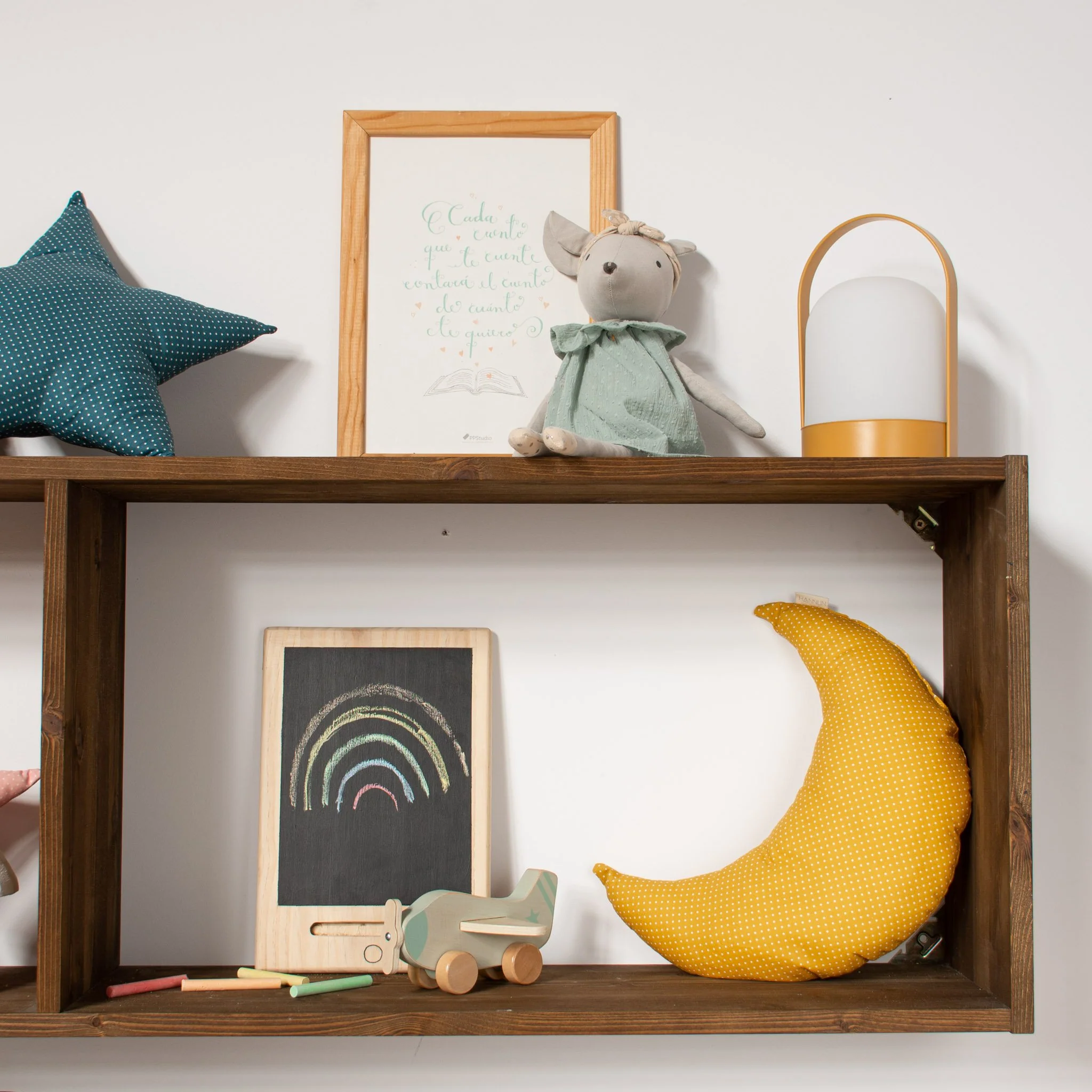 La mini pizarra Hera está pensada para que los más pequeños dejen volar su creatividad y desarrollen habilidades cognitivas. Fabricada con madera de pino natural con certificado FSC, es ideal para iniciarse en la lectoescritura y desarrollar la motricidad fina, hacer dibujos o recrear una pantalla táctil y jugar.