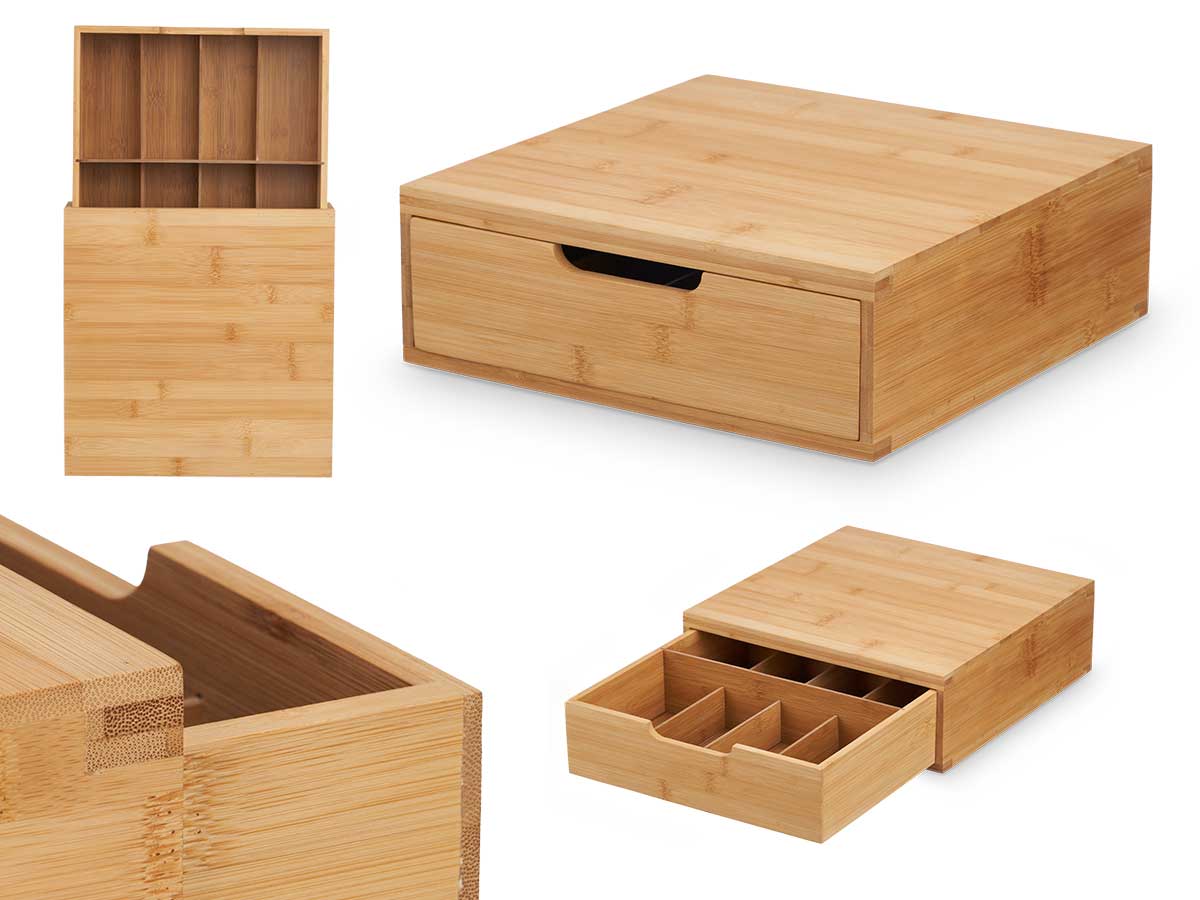 - Estética elegante: El color natural y el acabado del bambú hacen que este portacápsulas se vea sofisticado y se complemente con otros utensilios de cocina.