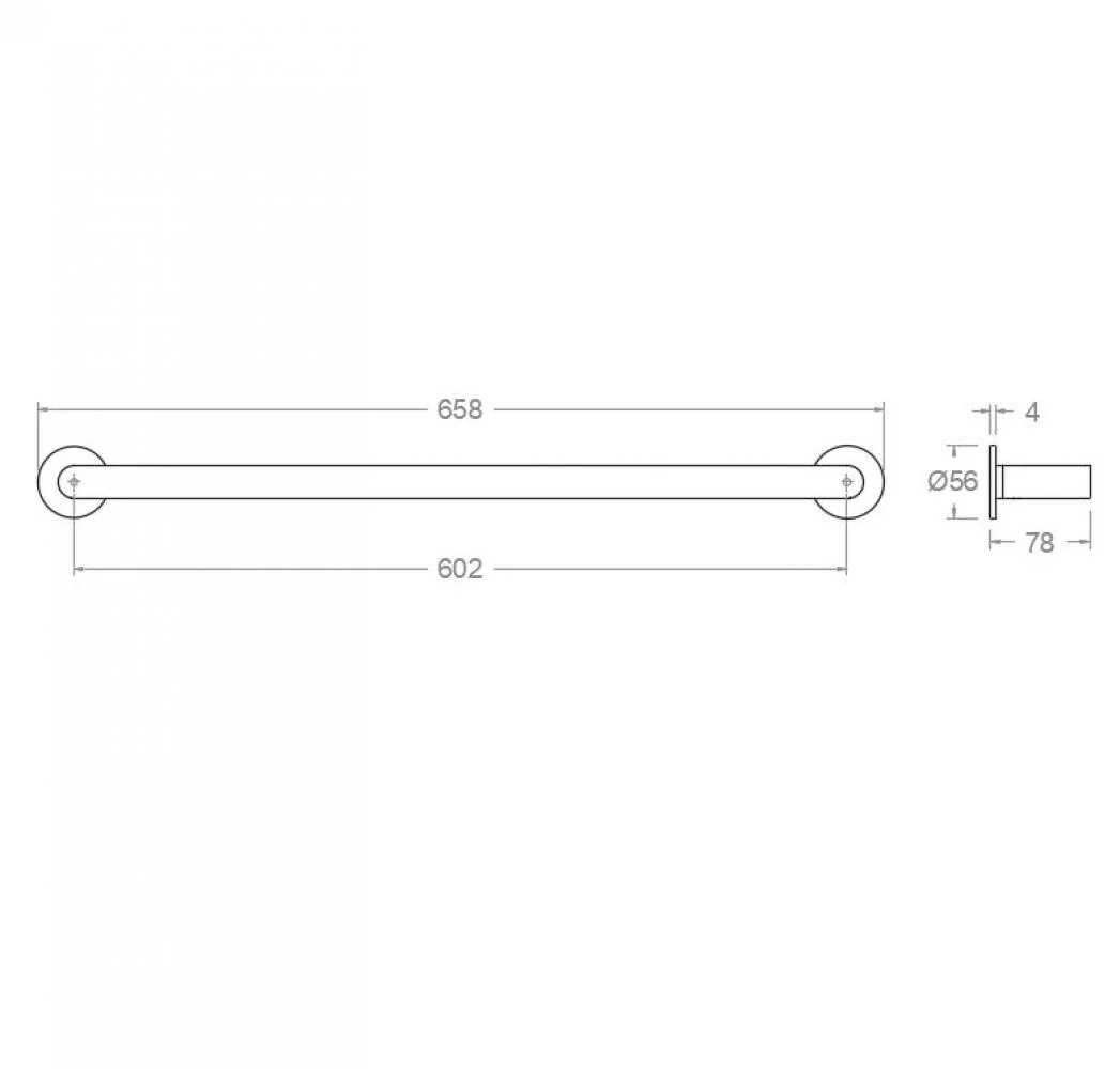 Toallero de pared para baño, tamaño L 627mm con Sistema de Instalación Dual, cromado fabricado por Ramon Soler.