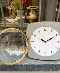 DESCRIPCION: reloj gris metálico con plexiglass convexo que permite su apertura