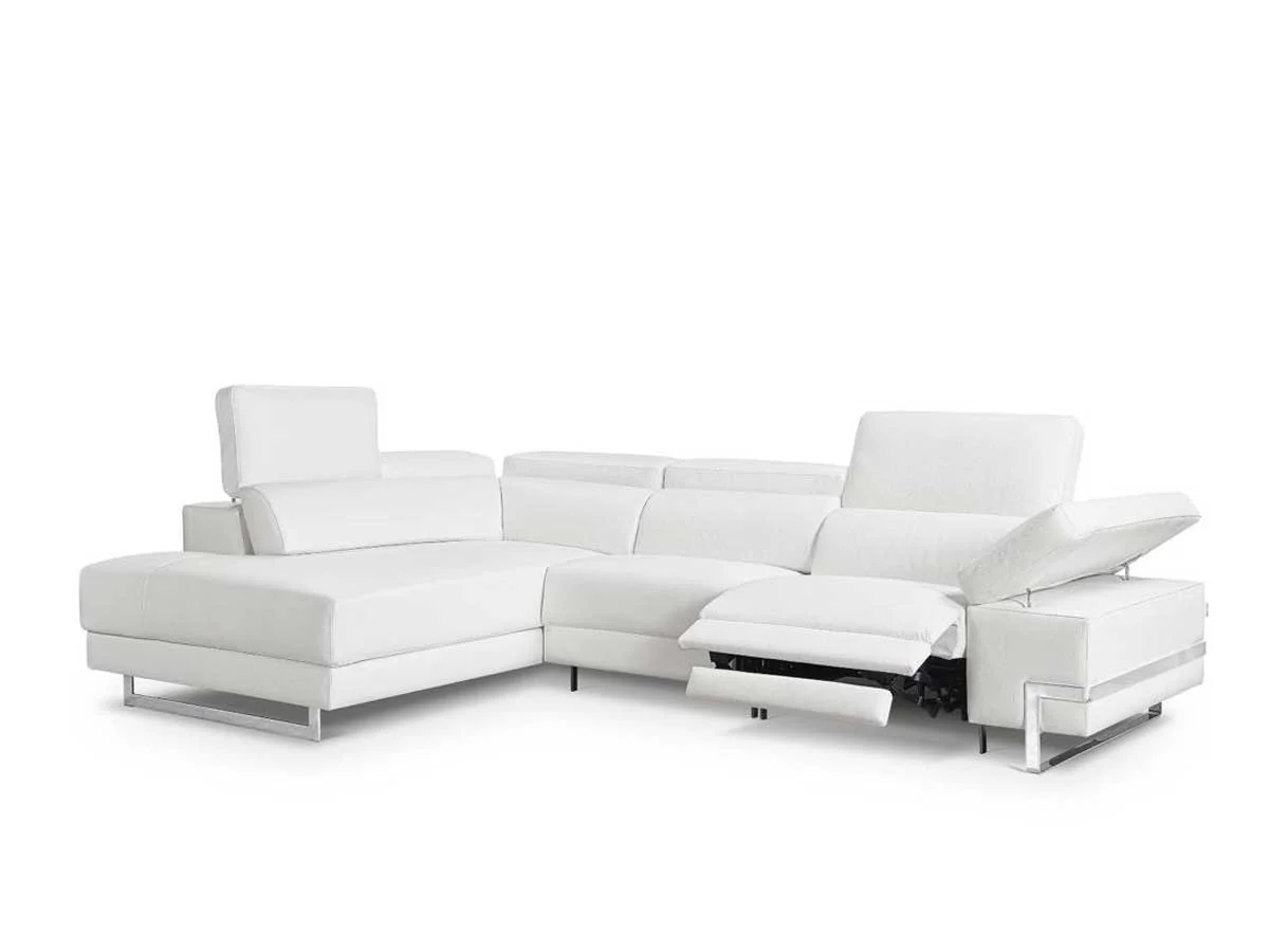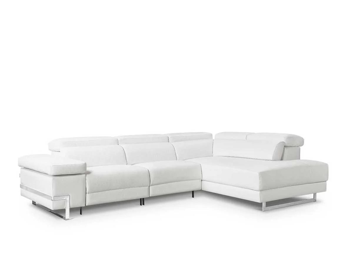 Rinconera de diseño abierto modelo ACAPULCO con 2 asientos relax motorizados en PIEL BLANCA