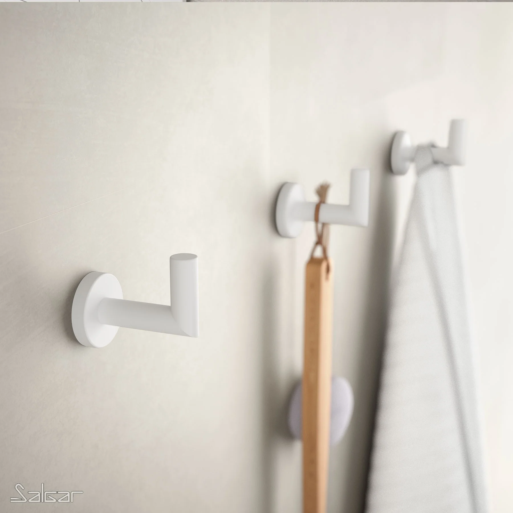 Percha de la serie LISSY de Salgar. LISSY es una serie completa de accesorios de baño disponible en blanco mate y negro mate.