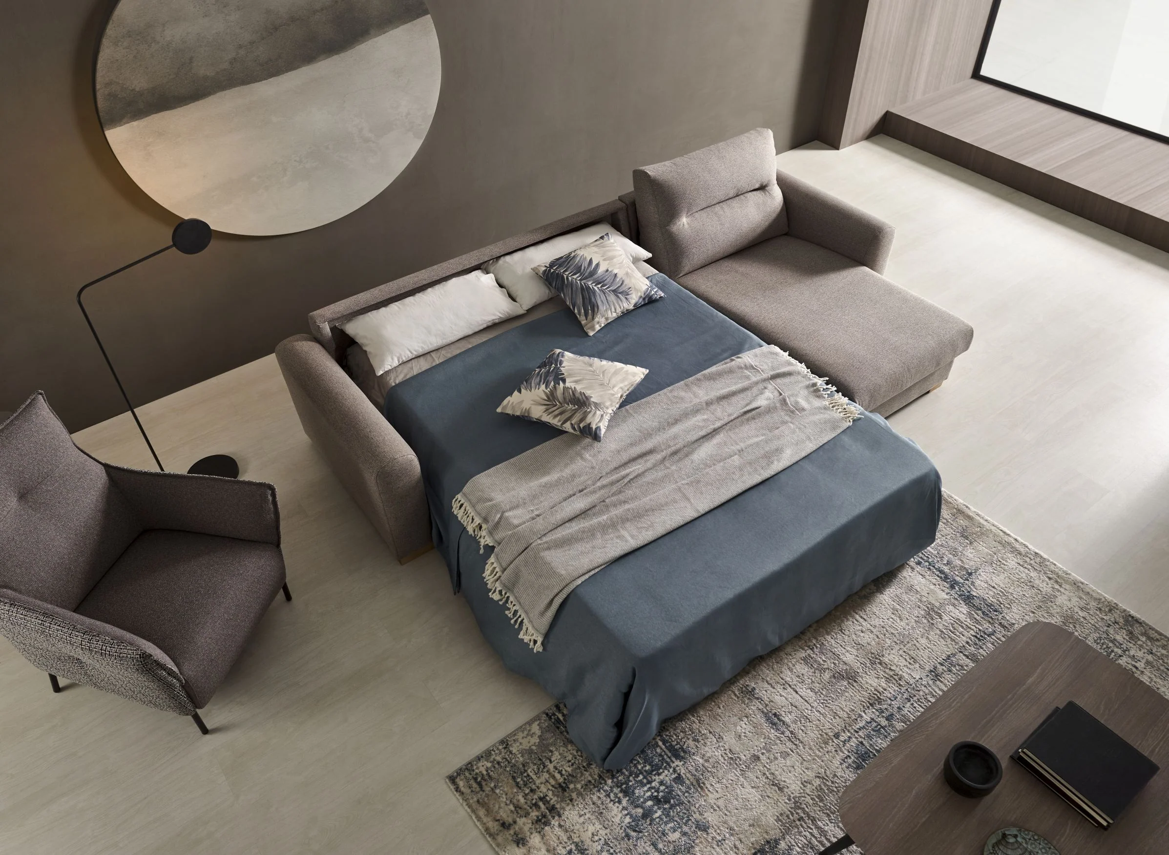 Sofá con chaiselongue cama modelo FARO con sistema de apertura Italiano
