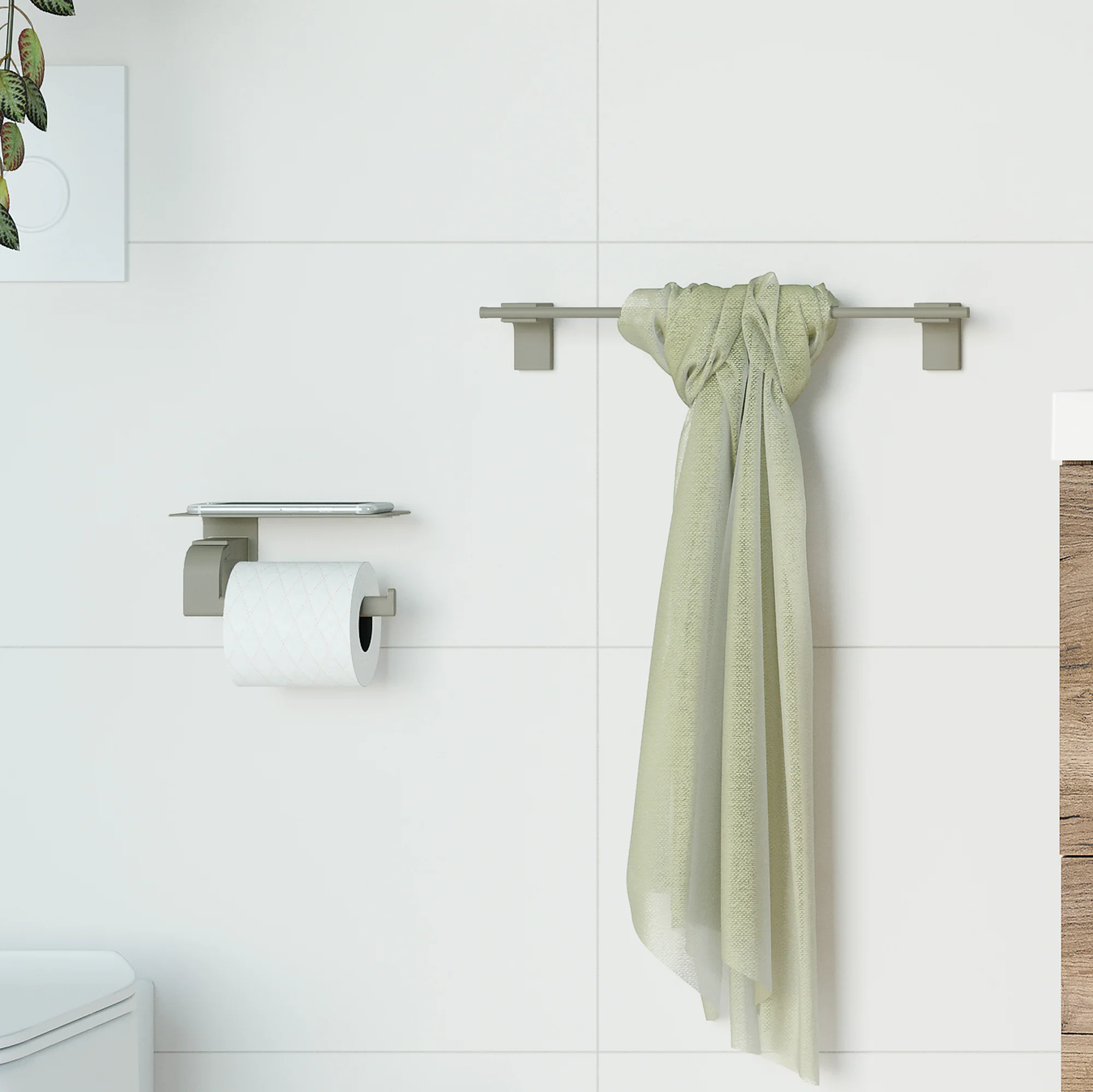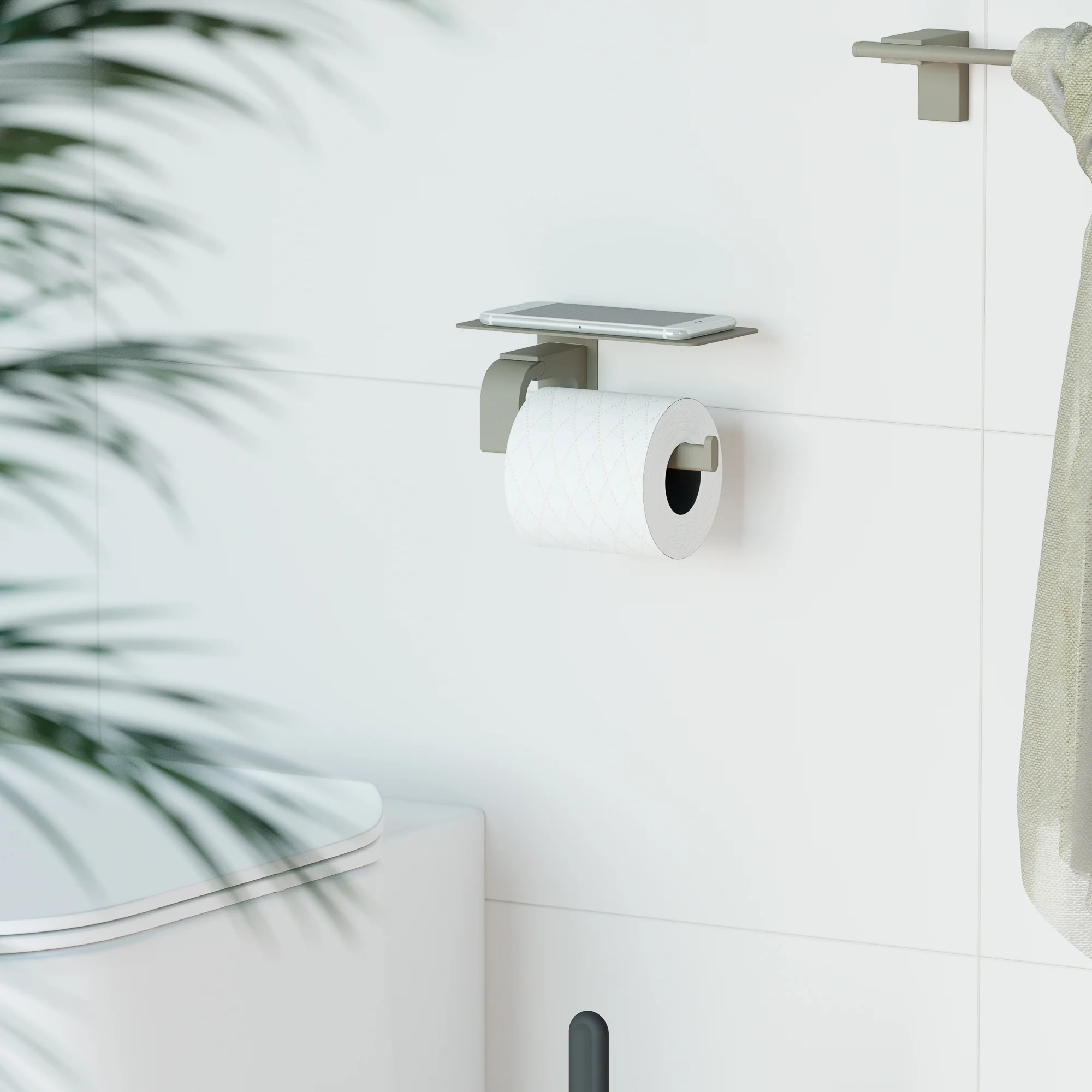 Portarrollos Repisa Verde Niebla de la serie ELETECH fabricado por Sonia Bath en España.