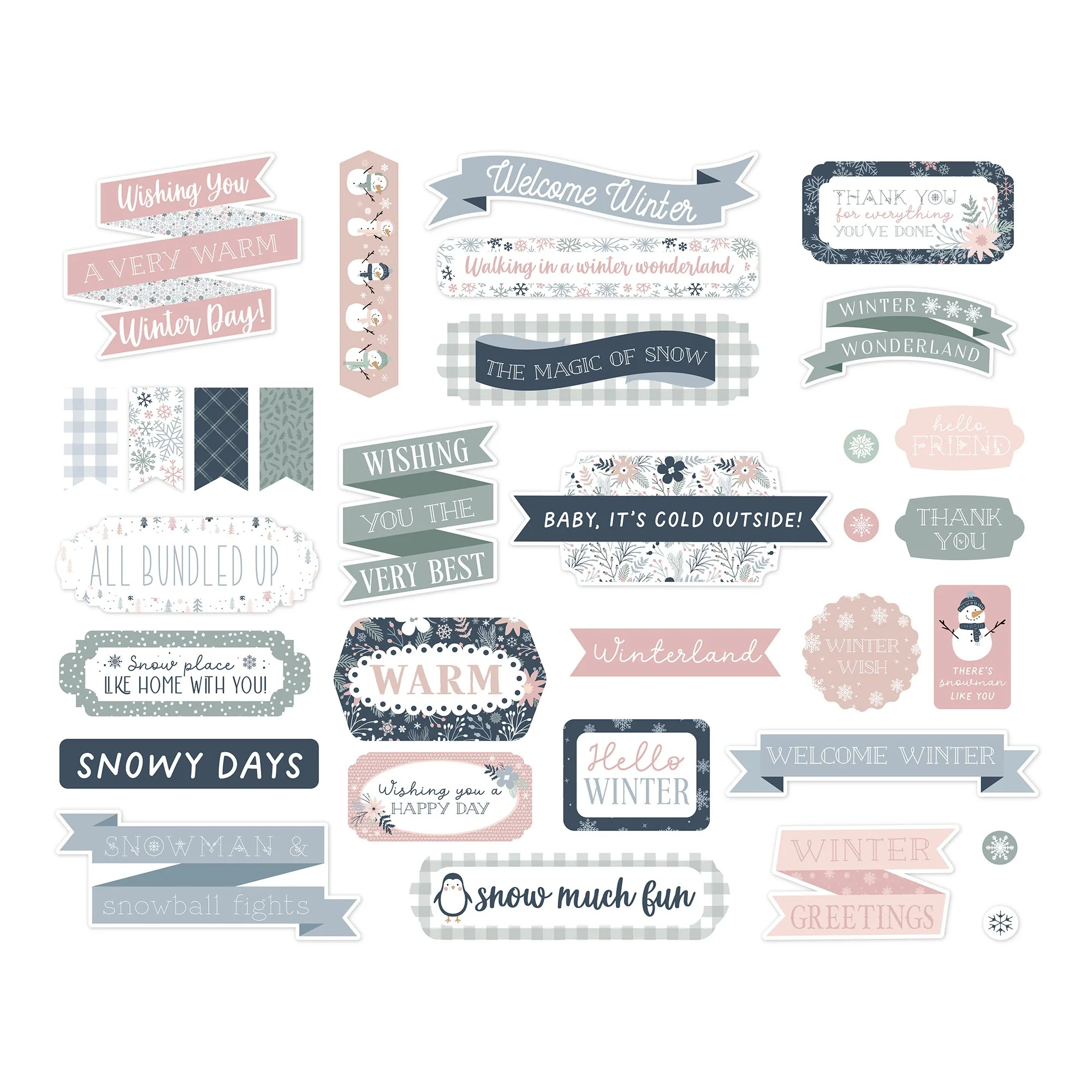 3 troquelados de títulos y frases que combinan con la colección para decorar tus trabajos y proyectos de Scrapbooking.