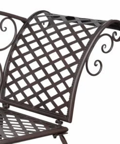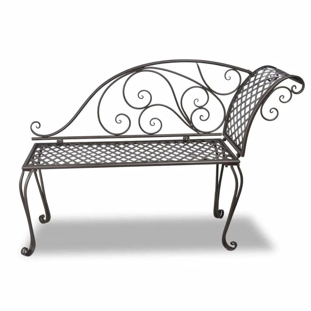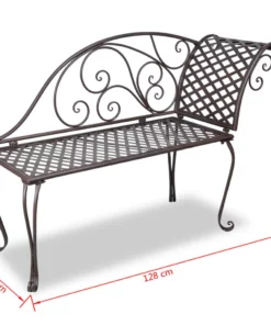 Esta chaise longue de exterior marrón, hecha de hierro de calidad, es un mueble elegante para su jardín. Gracias a su diseño ergonómico, este banco de jardín es muy cómodo para recostarse. Recostarse a leer un libro en este banco tumbona de jardín con adornos de volutas será un verdadero placer en los domingos soleados. La tumbona de jardín con estructura metálica es resistente a la intemperie y muy duradera.