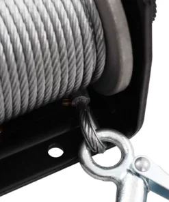 Este cabrestante eléctrico está especialmente diseñado para la recuperación de vehículos. El embrague de carrete libre incluido se acciona mediante un botón de tirar y girar que desengancha la caja de cambios para permitir que el cable extraiga sin usar energía eléctrica. Una placa tensora reduce la reacción y el frenado al tirar del cable. Equipado con un motor permanente, este dispositivo es adecuado para un uso de servicio intermitente. La entrega incluye: 1 cabrestante, 1 control remoto de cable, 1 gancho con cable, cable eléctrico y accesorios de montaje como tornillos y tuercas.