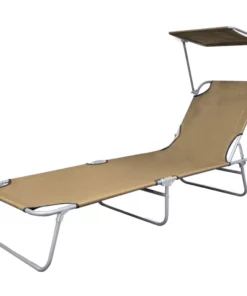 VXL Tumbona Plegable Con Parasol De Acero Gris Topo