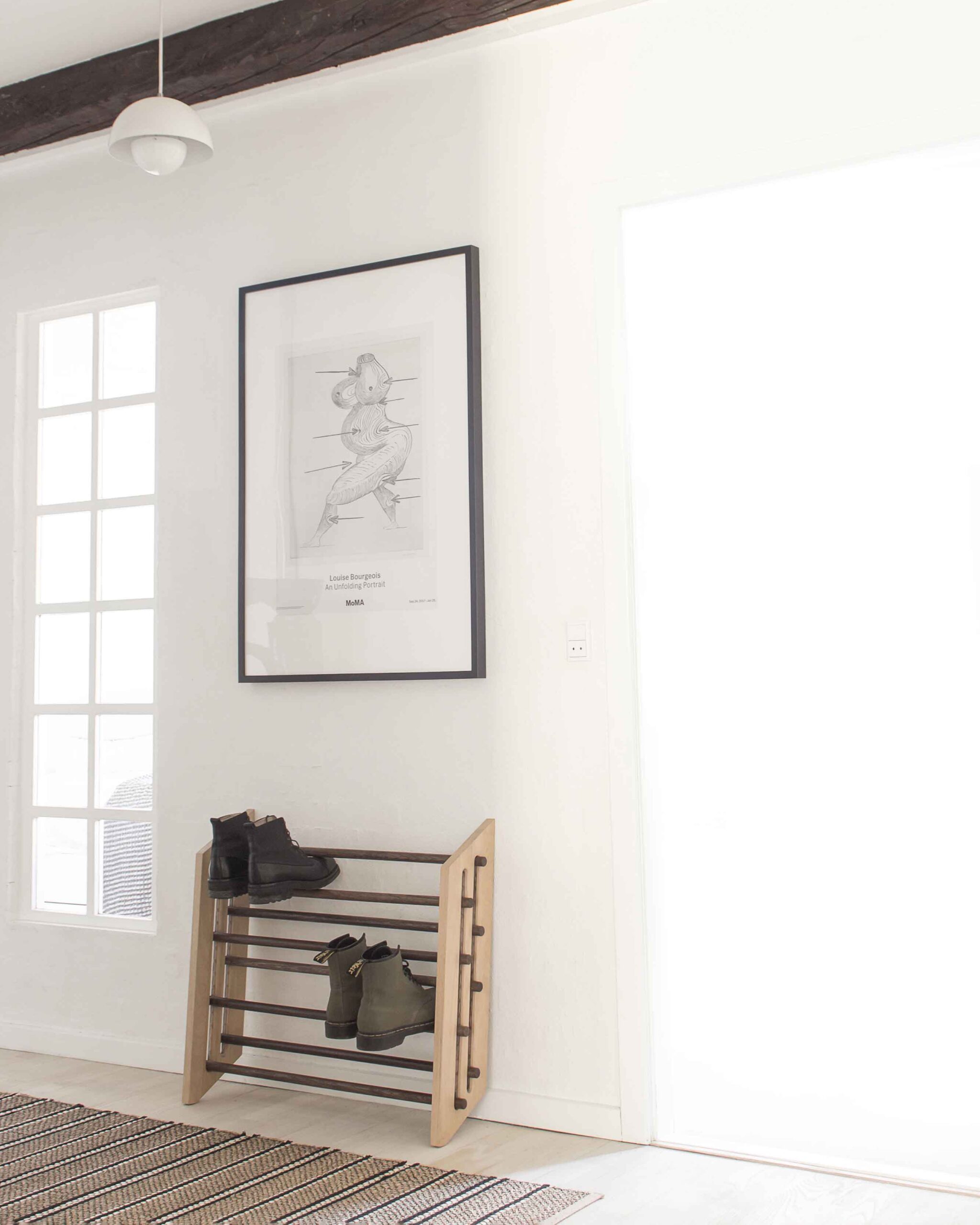 Moodstand es una inteligente solución de almacenamiento que destaca por su versatilidad gracias a la capacidad de sus listones para moverse y adaptarse a cada tipo y tamaño de zapato. Puedes fijarlo en la pared o colocarlo de pie en el suelo, lo que te permite integrarlo perfectamente en cualquier rincón.