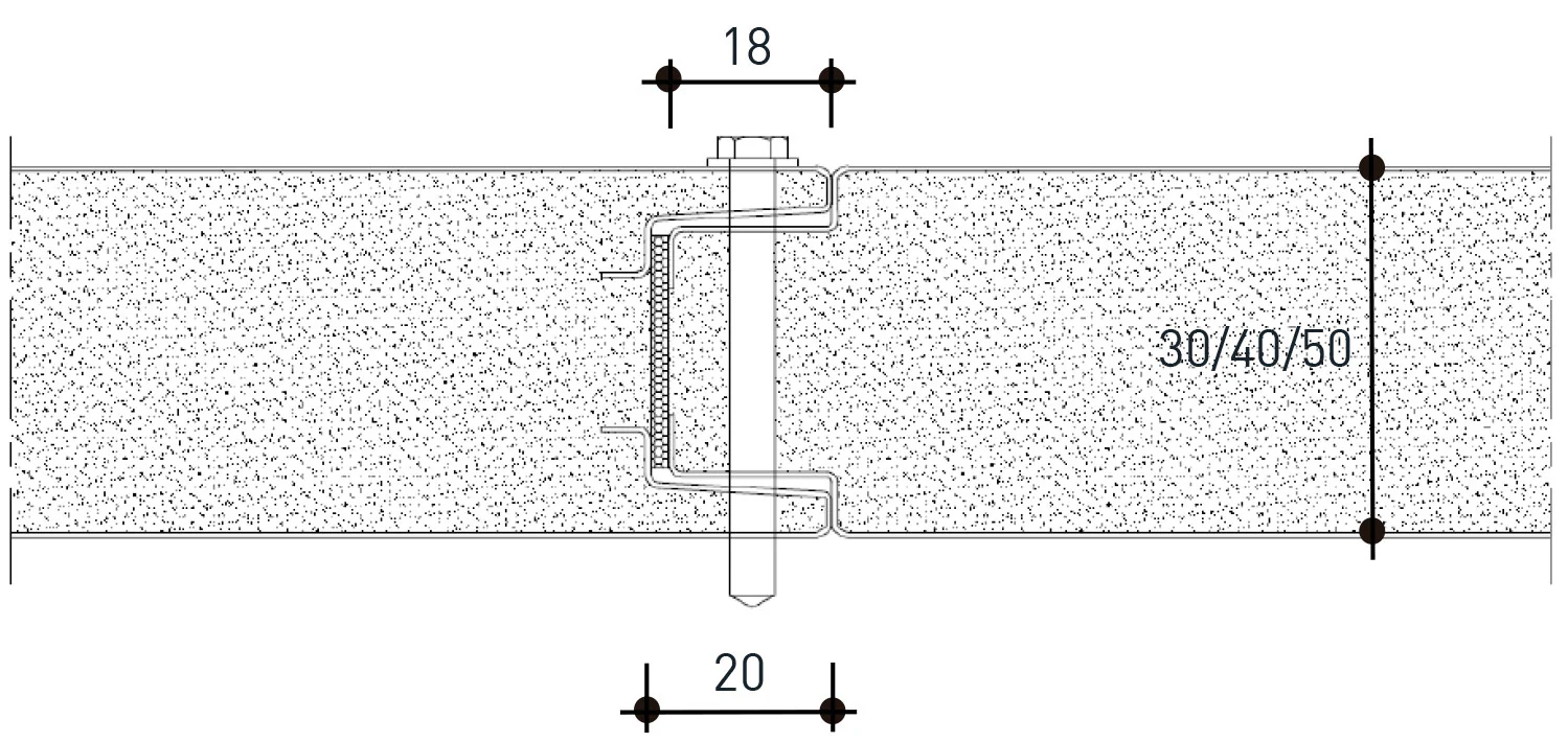 El panel sándwich muro está diseñado para la construcción de muros interiores y fachadas exteriores de edificios industriales, comerciales o residenciales. Tiene un sistema de fijación de tornillería vista y consta de tres capas, una lámina externa y otra interna de acero prelacado.